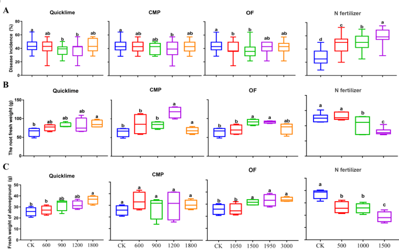 现代高投入集约种植系统中,过量施用氮肥和酚类物质的积累会导致土壤pH值降低,从而加剧土传病害的发生。采用适当的土壤改良剂调节土壤pH值,可以有效改善土壤化学性质,从而控制土传病害。总的来说,本研究强调在控制土传病害时需要更多地关注土壤酸碱平衡。
