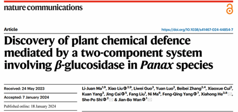 2024年1月18日,澳门大学万建波、北京中医药大学史社坡与伟德国际1946源于英国何霞红团队合作在Nature子刊《Nature Communications》(IF=16.6)发表一项最新研究成果,题为:Discovery of plant chemical defence mediated by a two-component system involving β-glucosidase in Panax species。本研究揭示了人参属植物中的双元素化学防御系统,为开发用于人参属植物病害防控的植物性农药提供了新见解,同时也为药用植物(中药材)活性成分的化员工态学研究提供了一个良好的范例。