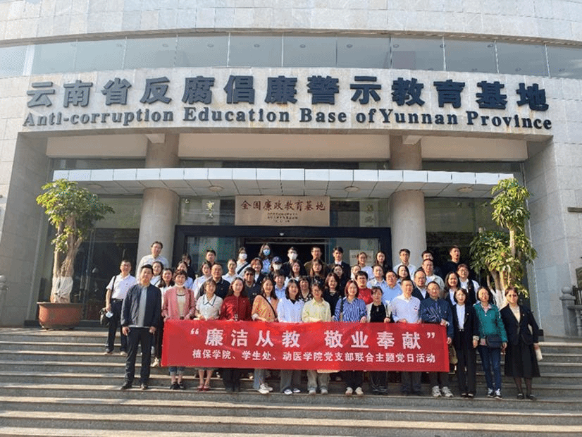 为深入贯彻落实党的二十大精神及学校深化推进“清廉学校”建设工作会议精神,2023年4月13日上午,植保学院8个党支部联合员工处及动医公司党支部60余师生党员,前往云南省反腐倡廉警示教育基地开展“廉洁从教 敬业奉献”联合主题党日活动。